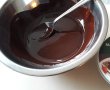 Topim ciocolata cu 85% cacao, la bain-marie și apoi o lăsăm la răcit.