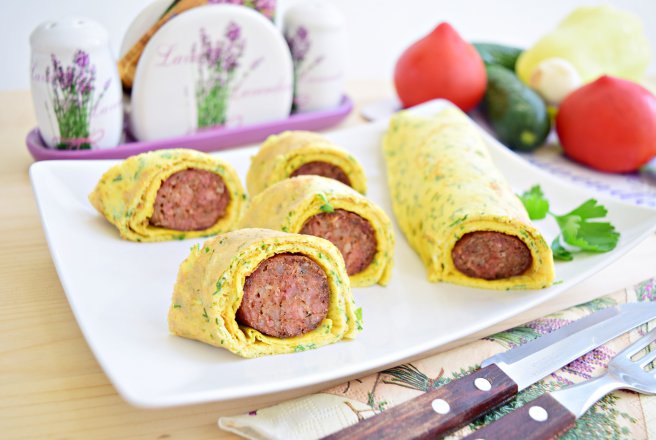 MOD DE PREPARARE RETETA Rulou de omleta cu verdeata si carnat de casa:
