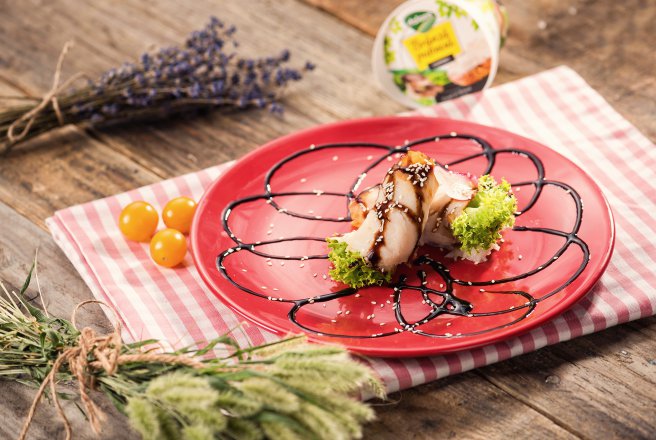 Rulati strans si la sfarsit adaugati crema de otet balsamic pe deasupra;