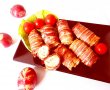L-am înfasurat în felii subtiri de bacon,l-am pus în tava cu hârtie de copt si l-am lasat la cuptor cam 30 de minute.