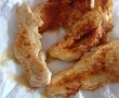 Pieptul de pui se condimenteaza cu sare,piper alb si boia dulce si se pune la prajit in ulei de masline.