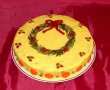 Am pus salata pe un platou si am imbracat-o cu restul de maioneza. Din fasii mici de castravete si gogosar am dat forma unei coronite de Craciun.