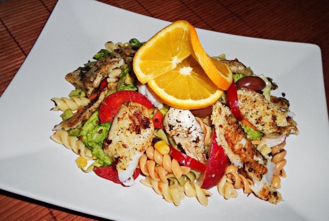 Pastele se pun la fiert în apă cu sare. Se strecoară, apoi se amestecă cu restul ingredientelor.
