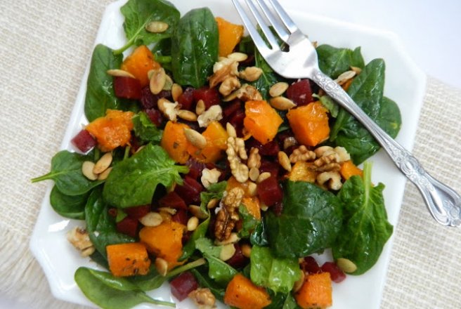 MOD DE PREPARARE RETETA Salata de spanac cu sfecla si dovleac: