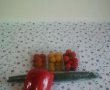 Rosiile cherry le taiem in doua, castravetele in felii subtiri, ardeiul gras il taiem in bucati mici. Amestecam toate legumele, adaugam putin sos de soia si o lingura de ulei de susan. Mozzarella o rupem in bucati mici si o amestecam cu legumele.
