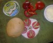 Am taiat chifla pe din doua, am uns fiecare parte cu branzica pufoasa de la Delaco si am ornat cu rosii si castraveti. Simplu, delicios si hranitor.