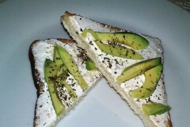 Paine se prajeste. Se unge cu branza slaba. Peste aceasta se aseaza feliile de avocado. Se adauga sare si ierburi.