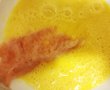 Intr-o farfurie adanca batem cele 6 oua cu putina sare si piper. In alta farfurie punem pesmetul.