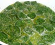 Lasam pe foc 30 de secunde si punem spanacul, peste el turnam zeama de lamaie si o cana de apa. Punem capacul si il tinem pana se inmoaie( in jur de 12 minute) la foc mic.