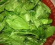 Curatam spanacul, apoi il spalam sub jet de apa rece in mai multe ape.