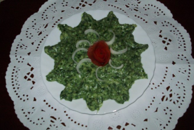 Se spala spanacul si se fierbe pe aburi(e mai sanatos)daca nu in apa cu putina sare se opareste putin,apoi se lasa sa se raceasca si se toaca marunt