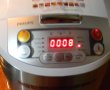 Dupa 20 minute se adauga 2 cani apa , sare si boia . Se prepara in continuare pe Stew timp de 30 minute .Dupa 20 minute am deschis capacul pentru ca lichidul sa se evapore mai rapid .
