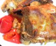 Am servit bucatile de spate, calde , prajite crocant cu fulgi de chili presarat deasupra si gogosari murati.