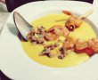 Ei și acum dacă am fost provocați, ne-am pus la treabă. Ca de obicei, am cotrobăit printre rețete mai vechi și am găsit o provocare minunată. Lulu, mereu ne-a încântat cu rețete simple și interesante ;) https://www.bucataras.ro/retete/supa-crema-de-cartofi-cu-fructe-de-mare-42760.html. Așa că m-am pus la treabă. Am renunțat la somon, iar șofranul, l-am înlocuit cu condimente pentru paella, în care era și el inclus ;) O combinație minunată, și da, nu vă speriați de laptele de cocos, nu strică gustul preparatului, e inofensiv, dar aduce un plus de catifelare. Gata cu vorba și spor la treabă! ;)