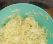 Se curata dovleacul, se taie in doua, apoi cu o lingura se indeparteaza semintele. Restul se da pe razatoarea mare, se presara cu sare, se da si ceapa pe razatoarea mare si se lasa sa stea jumatate de ora.