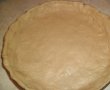 In forma de tarta, am intins 3/4 din aluat si putin peste peretii formei in jos, am intepat din loc in loc aluatul cu o furculita, am asezat prunele una langa alta si am turnat peste ele crema de nuci. Am confectionat un grilaj din restul de aluat pe care l-am pus deasupra cremei de nuci si am intors marginile primului aluat peste tarta. Am copt in cuptor 35 minute la 180 grade.