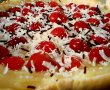 Se intinde o foaie rotunda si se pune in forma de tarta, o intepam cu furculita din loc in loc si o dam la cuptor pt maxim 10 min.