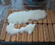 Piscoturile se introduc in cafeaua amara si se tapeteaza cu ele o forma de sticla dreptunghiulara.