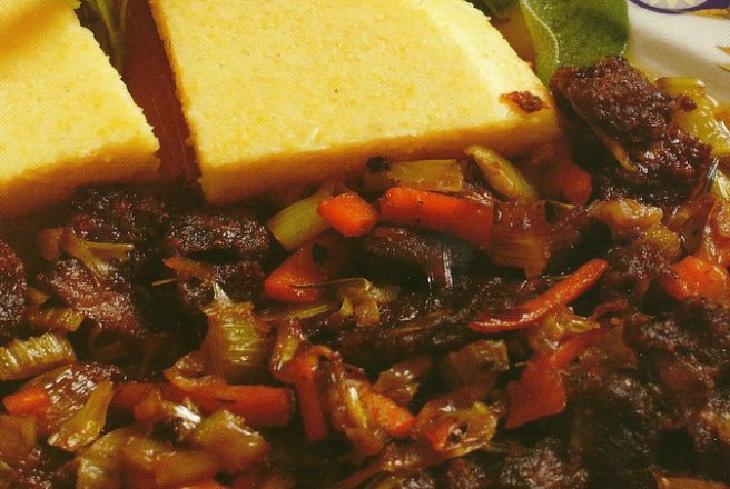 Taiati ceapa, prajiti-o in ulei pina se rumeneste, apoi adaugati usturoiul si rozmarinul. Prajiti inca putin apoi turnati vinul si "curatati" tigaia, folosind o lingura de lemn pentru a stringe resturile caramelizate. Turnati continutul tigaii in ceaunul cu carne.