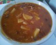 Intr-o tigaie punem kaizerul taiat bucati (nu trebuie ulei, isi lasa grasime suficienta), il prajim putin, iar peste punem ceapa si morcovul taiat cubulete mici, le calim si pe acestea putin si la final punem bulionul si pasta de ardei, mai lasam 2-3 minute si stingem focul.