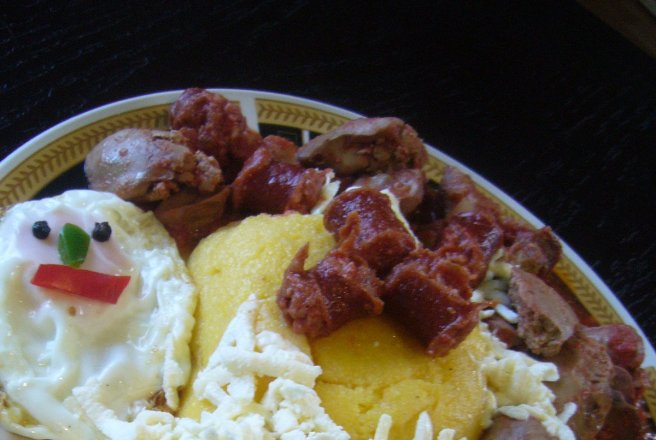 Evident că am servit tochitura cu mămăligă şi brânză de oaie (opţiune personală) alături de un ou ochi