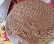 Se incinge cuptorul si compozitia se toarna pe fundul unei forme de tort de 26cm,tapetata cu hartie de copt si se coace 35-40minute,dupa care se scoate si se lasa la racit,se desprinde de hartia de copt si se taie in trei parti.