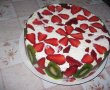 Am facut tortul in mai multe variante: in varianta originala cu portocale, cu kiwi si ananas, cu kivi si portocale...la aceasta varianta am folosit doua blaturi unul galben si unu cu cacao ...am pus o poza si cu sectiune... toate au fost foarte buna