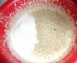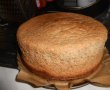 Blat: Am pregatit blatul cu o zi inainte pentru ca se taie mai bine a doua zi, asta cand nu esti presat de timp.Albusurile cu un praf de sare le-am mixat bine. Galbenusurile cu zaharul le-am frecat pana ce zaharul s-a topit, apoi am adaugat nuca macinata si faina, am omogenizat. Am incorporat albusul batut spuma avand grija sa amestec de jos in sus cu miscari lente. Am tapetat cu hartie de copt o forma de tort cu diametrul de 18 cm si am turnat compozitia in forma, am dat forma la cuptorul preincalzit, este gata cand trece testul scobitorii, se stinge focul la cuptor si se lasa usa cuptorului intredeschisa sa se raceasca bine blatul. A doua zi se taie in 4.