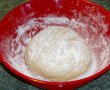 Se pune intr-un castron mare, se presara cu faina si se pune la loc cald pentru 30-40 minute pana isi dubleaza volumul.
