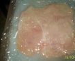 Vom incepe sa montam preparatul nostru dupa cum urmeaza: peste pieptul de pui prajit, adaugam sunca, peste aceasta umplutura, urmeaza un rand de cascaval, rondelele de rosii si mai radem deasupra cascaval.