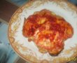Inainte sa-l dam la cuptor vom amesteca, 2 linguri de pasta de tomate, o lingura de ulei de masline si o lingura de apa, saram si piperam, adaugam si cimbru iar acest amestec il punem peste preparatul nostru si il dam la cuptor la 180 de grade 22-22 de minute.
