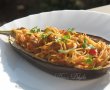 Inchidem focul, adaugam pastele fierte si amestecam.