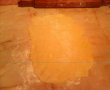 Intre timp pregatim tavile cu hirtie de copt si preincalzim cuptotul la 180 grade.Scoatem aluatul il impartim in 4 parti egale apoi intindem pe rind cit mai subtire cite o foaie si decupam( eu am folosit un pahar) asezam in tava si introducem in cuptor pentru25-30 minute nu trebuie sa fie rumenite tare.