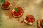 Rosiile se spala, se taie in jumatati si se scoate miezul. Apoi se taie cubulete. Intr-un castron se pun rosiile, busuiocul taiat marunt, sarea si piperul. Painea se prajeste si se unge cu ulei si usturoi. Dupa, se adauga din amestecul de rosii si se servesc cu putin ulei de masline...
