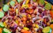 Intre timp, se taie rosiile cuburi si se amesteca cu ulei de masline, sare si piper.