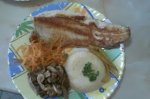 Se pregateste sosul de mustar astfel:intr-un castronel se amesteca mustarul cu maionaza pana se formeaza o pasta.Cu aceasta pasta se unge pestele. Se pune hartie de pergament intr-o tava de aragaz,se unge cu ulei de masline,se aseaza pestele,se condimenteaza cu sare si piper si zeama de...