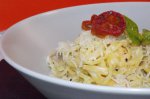 Pentru inceput ne pregatim ingredientele, le scoatem din frigider si le punem la indemana. Avem grija sa citim timpul de fierbere de pe ambalajul pastelor. Este important pentru ca vom fierbe pastele in apa cu sare doar jumatate din timpul indicat pe ambalaj. La mine scria 6 minute, deci le-am...