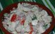 Am amestecat prazul si usturoiul tocate cu patrunjel verde , codite de ceapa , sare si oul intreg.