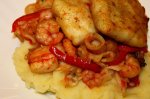 Pestele se condimenteaza cu sare, piper si putin ulei de masline. Ceapa se taie felii subtiri, ardelul la fel, iar usturoiul marunt. Calamarii se taie si ei in fasii, iar surimi in cuburi. Amestecam fructele de mare cu ceapa, usturoiul, ardelul, pasta de rosii, boiaua, sare, piper si 3-4...